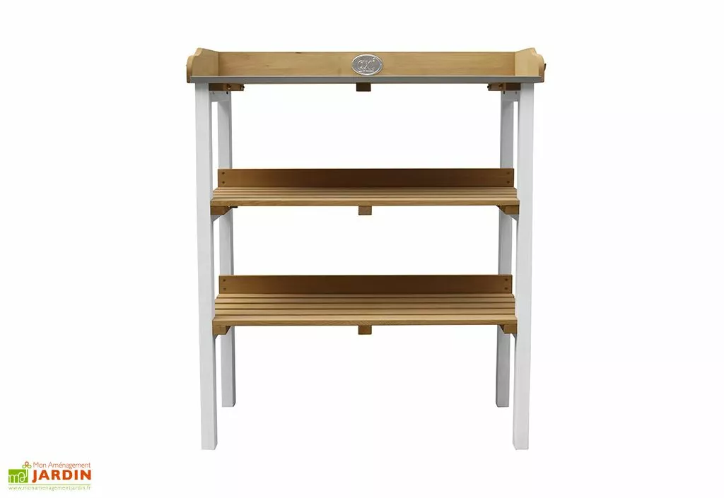 Robuste et très résistante face aux agressions extérieures, cette table de jardinage en bois pourra supporter une charge maximale de 50 kg. Elle est fabriquée en hemlock, un bois imputrescible qui ne craint ni l’humidité, ni la moisissure ou les insectes qui pourraient le détériorer. Ce bois est même certifié FSC, ce qui signifie qu’il provient de forêts gérées dans le respect de l’environnement. Le plan de travail, de son côté, résistera à la corrosion et l’ensemble de la table ne vous demandera aucun entretien particulier.