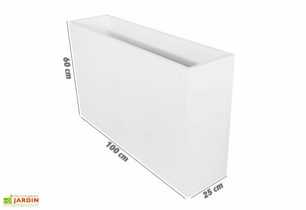 Votre jardinière en béton rectangulaire de la marque Blive mesure 100x25x60cm (l,l,h). Elle est créée à partir de béton fibré (16mm). Ce renfort en fibre minérale rend le béton particulièrement résistant à l’érosion et aux intempéries. Idéal pour accueillir des plantes en tout genre, ce bac à fleurs vous permettra de fleurir et d’égayer vos espaces extérieurs. Il est disponible en 3 coloris : banc, gris et anthracite.