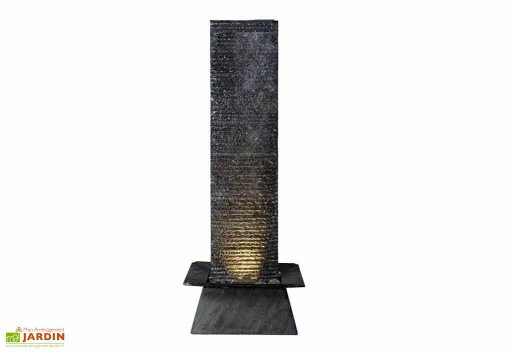 Votre fontaine de jardin en pierre de schiste noire est fabriquée en France par Cactose. L’écoulement de l’eau se fait sur les deux faces de la pierre avec un son délicat et apaisant.