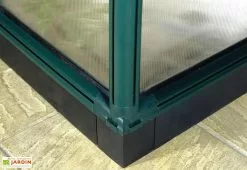 La base permet de rehausser la serre de quelques centimètres et de lui apporter une stabilité supplémentaire. Elle vous permet également d’éviter la réalisation d’une dalle de béton. Attention, le sol doit être parfaitement de niveau tout de même.