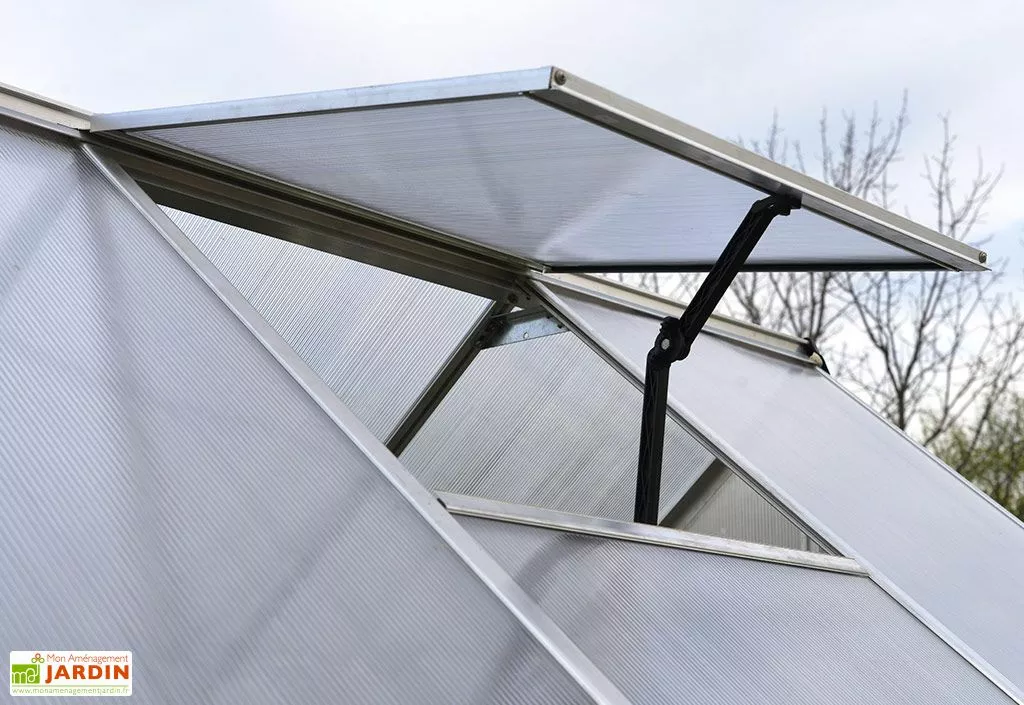 La circulation de l’air, tout comme la régulation de l’humidité ou de la température, sont des éléments importants à prendre en compte lorsque vous cultivez des plantes. Palram-Canopia a donc doté sa serre de deux fenêtres de toit à ouverture manuelle et d’une double porte. Cette dernière est par ailleurs équipée d’un système de fermeture magnétique et garantit un large passage pour accéder à l’intérieur de la serre.