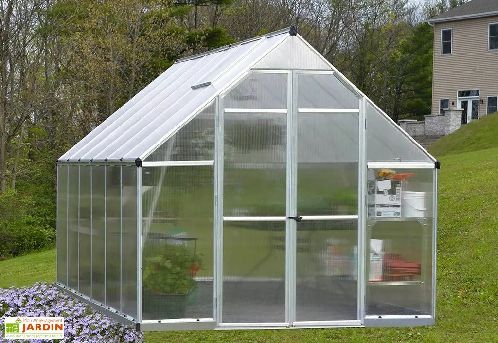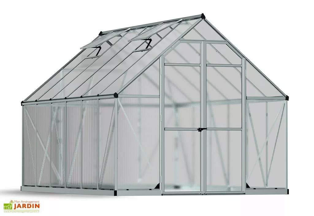 Facile à monter, cette serre de jardin Palram-Canopia vous permettra de consacrer un espace de 8,9 m² à la culture de plantes et arbustes. Elle dispose d’une structure en aluminium de 3,67 x 2,44 m, pour 2,29 m de haut. Cette armature, à la fois solide et légère, est dotée de renforts et repose sur une base en acier galvanisé, pour une stabilité optimale. L’aluminium étant un matériau insensible à la corrosion, cette structure ne craindra pas la rouille.