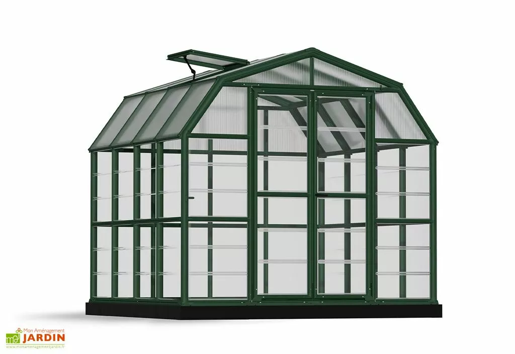 La serre de jardin Palram-Canopia Grand Gardener 8×8 est une serre qui mélange le polycarbonate et le PVC, des matériaux résistants qui ne demandent aucun entretien face à la moisissure, à la corrosion ou aux attaques d’insectes. Elle mesure 2,64 m de longueur pour une largeur de 2,67 m et une hauteur de 2,37 m ce qui vous permet de bénéficier d’une surface de plus de 7 m².