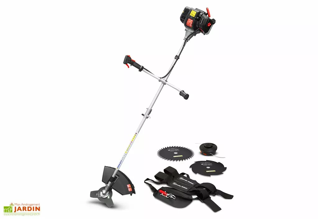 Cette débroussailleuse thermique de la marque Elem Garden témoignera d’une belle efficacité pour vos travaux d’ébarbage et de débroussaillage. Elle est livrée accompagnée de différentes lames et d’une bobine de fil de 2,4 mm de diamètre permettant de s’attaquer à divers types de végétaux. Vous pourrez ainsi profiter de différentes largeurs de coupe, selon que vous utilisiez une lame (25 cm) ou le fil (43 cm).