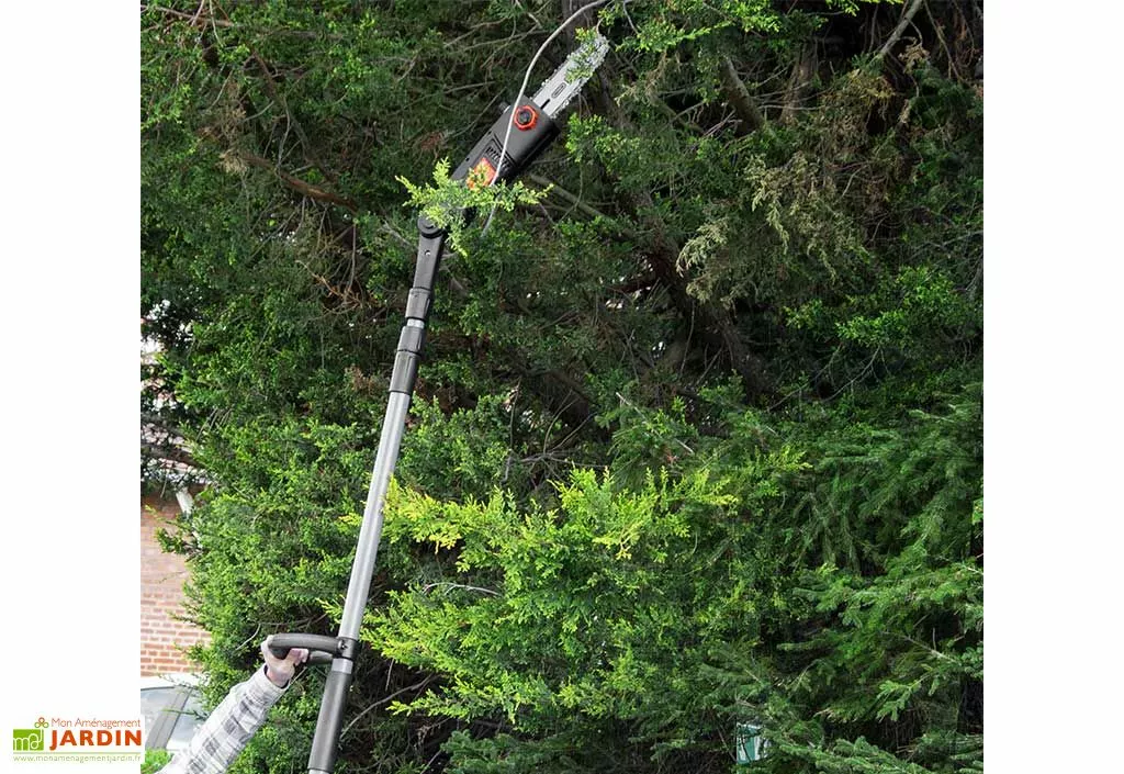Cette élagueuse sur perche Elem Garden est idéale pour atteindre les branches les plus hautes. Elle est en effet dotée d’un manche télescopique d’une longueur maximale de 3,20 m et d’une tête orientable inclinable à 30°. Cette scie à ébrancher vous permettra donc d’atteindre de nombreuses branches sans avoir à quitter les pieds du sol, pour des travaux d’élagage parfaitement sûrs !