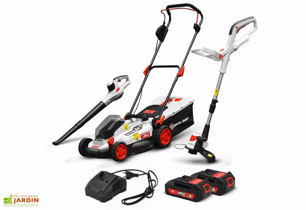 Ce kit Elem Garden comprend une tondeuse à gazon, un coupe-bordure et un souffleur, soit tout le nécessaire pour entretenir facilement votre pelouse et les allées de votre jardin ! Deux batteries de 20 V (max. 2 Ah) et un chargeur rapide permettant de recharger les batteries en seulement 1 heure sont également inclus.