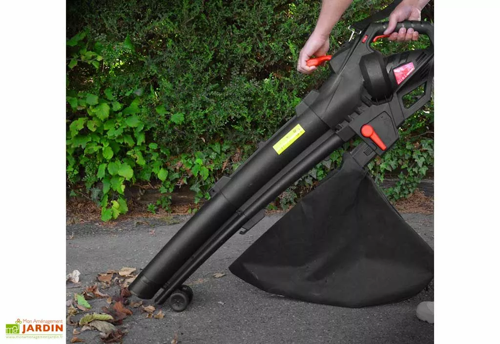 Ce souffleur de feuilles est équipé d’un moteur d’une puissance de 3000 W. Il délivre un volume d’air maximal de 13,2 m³/min, à une vitesse comprise entre 160 et 270 km/h. Vous pourrez en effet ajuster la vitesse de l’air en fonction de vos besoins. Afin de vous offrir des conditions de travail plus confortables, cet aspirateur-souffleur vous sera livré accompagné d’une sangle et grâce à ses petites roulettes, vous pourrez progresser facilement sur la surface à traiter.
