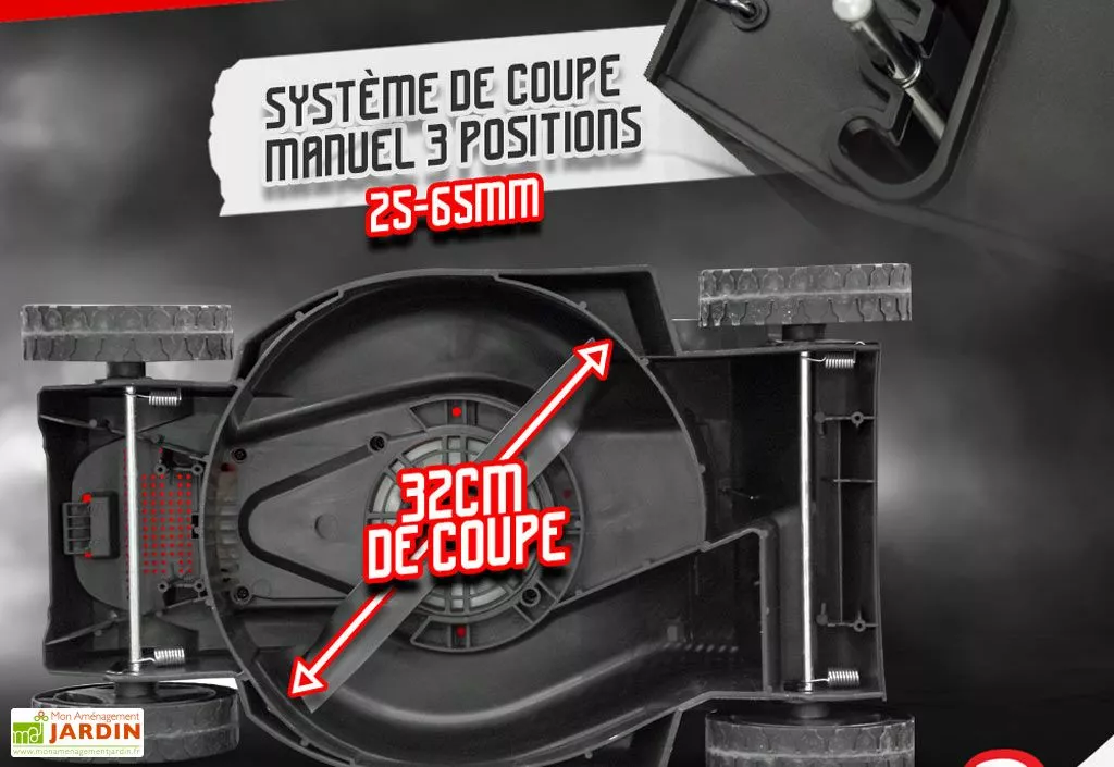 Bien conçue, cette tondeuse électrique est dotée d’une double sécurité avec un bouton à enclencher plus une gâchette de puissance à activer au moment du démarrage. Elle dispose en outre d’un carter en polypropylène chargé d’abriter une lame en acier démontable et affûtable et est également équipée d’un guidon pliable en un clin d’œil, ce qui lui permettra d’occuper moins d’espace une fois rangée.