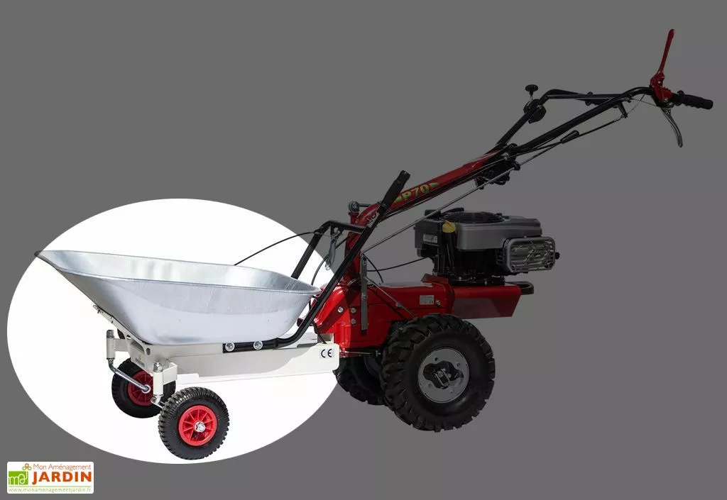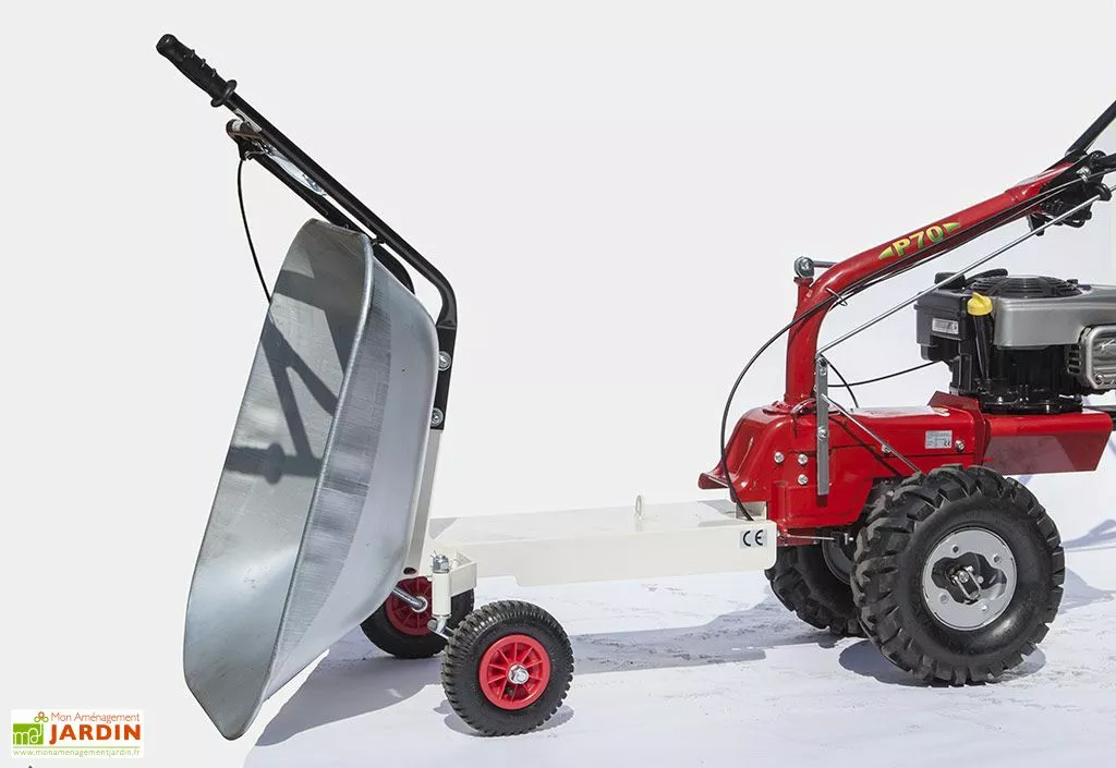 La cuve de transport s’installe sur le Porte Outils Thermique Multifonctions 190 CC – P70. Elle permet de le transformer en véritable brouette thermique. La cuve possède une contenance de 85 litres et peut supporter jusqu’à 75 kg.