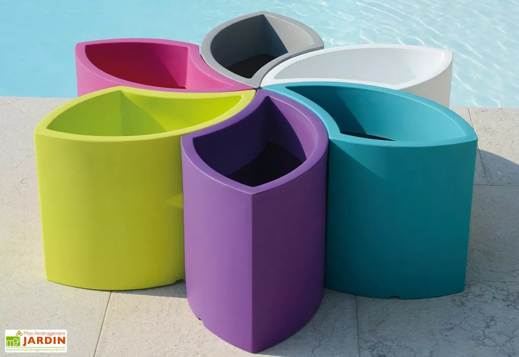 Chaque pot de fleurs possède des dimensions de 43 x 25 x 40 cm et peut être disposé de la manière que vous souhaitez si vous ne voulez pas forcément les assembler. Les 6 couleurs qui composent cet ensemble sont le violet, bleu, rose, vert, blanc et gris.