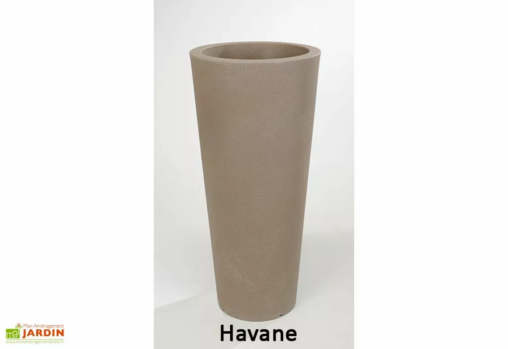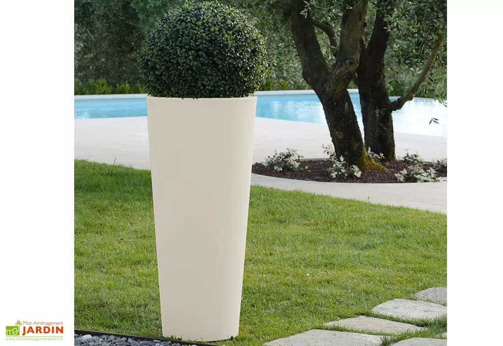Le pot de fleurs Hydra en polyéthylène rotomoulé de chez Farmet New s’installe à l’extérieur. Ce très grand pot mesure 85 cm de hauteur et 39 cm de diamètre pour une contenance de 26 litres. Il est disponible en plusieurs coloris.