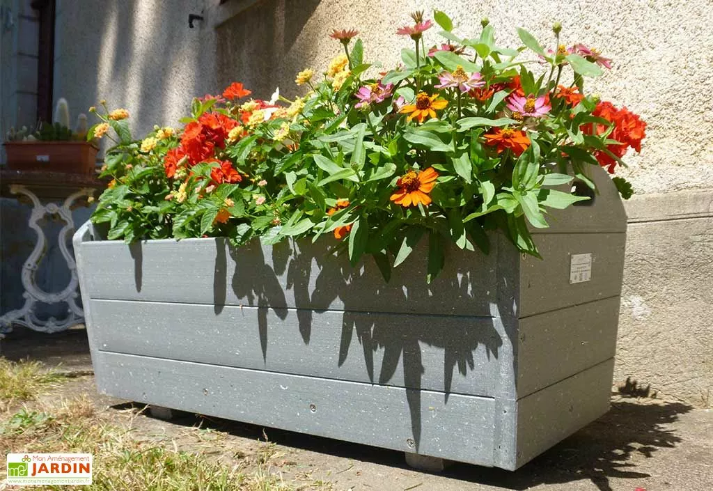 Cette jardinière rectangulaire est fabriquée en France, dans un matériau composite respectueux de l’environnement : le Polymab. Il s’agit d’un matériau à la fois solide, imputrescible et facile d’entretien obtenu grâce au recyclage de briques alimentaires, plus de 5000 dans ce cas précis. Cette solution écologique se montrera de plus tout aussi adaptée au bon développement de vos plantes et fleurs que les matériaux traditionnellement utilisés pour la conception de jardinières.