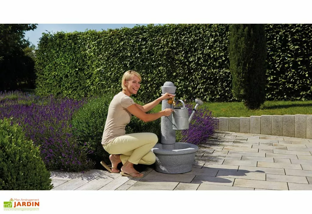 Cette fontaine d’extérieur est équipée d’une vasque et d’un robinet gargouille en laiton de 19 mm. Le tout est facile à installer (raccordement par le bas 19 mm). Notez enfin que le polyéthylène étant un matériau résistant aux intempéries et aux rayons UV, cette fontaine ne nécessitera aucun entretien particulier et ne décolorera pas au fil du temps.