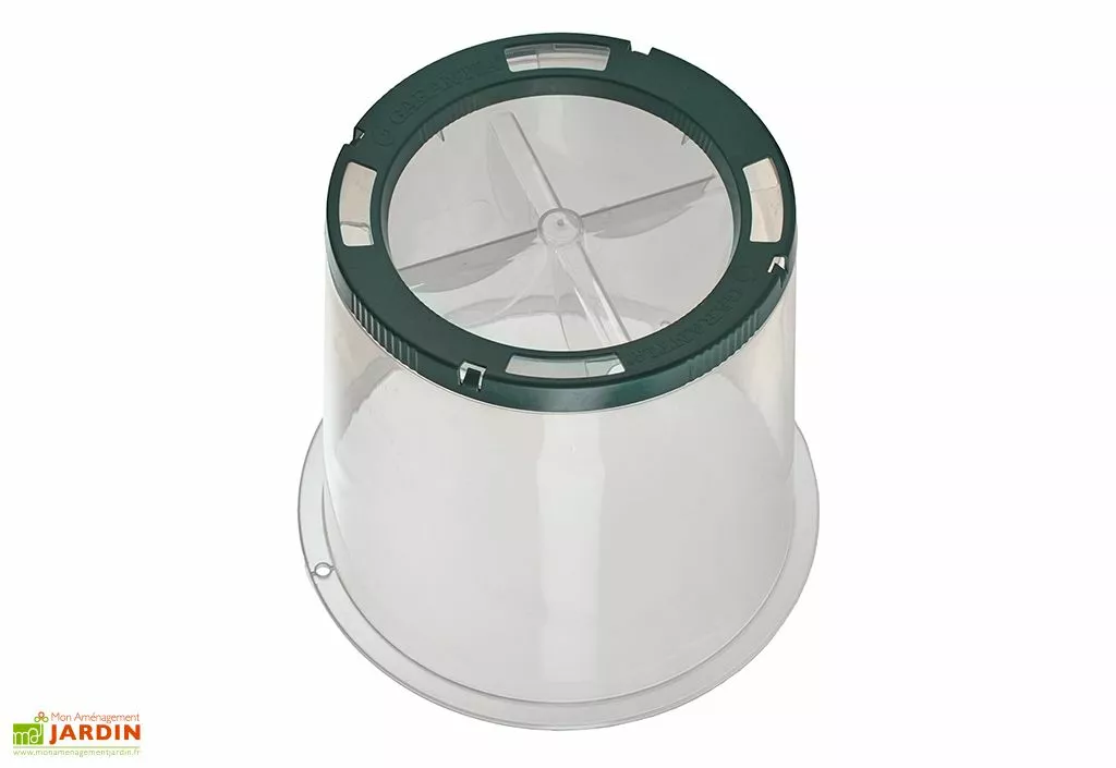 La cloche de culture est fabriquée en plastique de haute qualité traité anti-UV. Elle mesure 35 cm de diamètre pour 30 cm de hauteur. Cette mini serre est équipée d’un système de ventilation et d’irrigation favorisant la croissance de vos plantes. Une fois la saison terminée, les cloches de culture pourront être empilées entre elles pour un rangement optimisé.