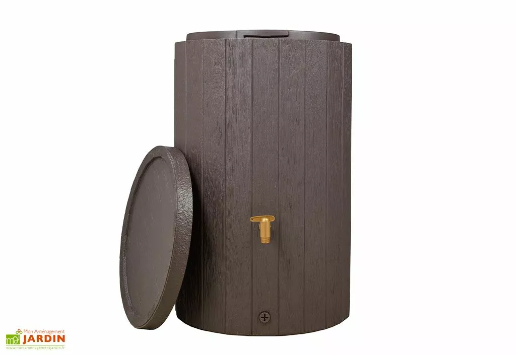 La cuve mesure 57 cm de diamètre, 93 cm de hauteur et dispose d’une contenance de 220 litres. Pratique, elle est équipée d’un couvercle amovible qui permet de l’ouvrir totalement. Une sécurité enfant évite tout risque d’accident. Les matériaux utilisés pour la conception de cette cuve sont 100% recyclés et recyclables.