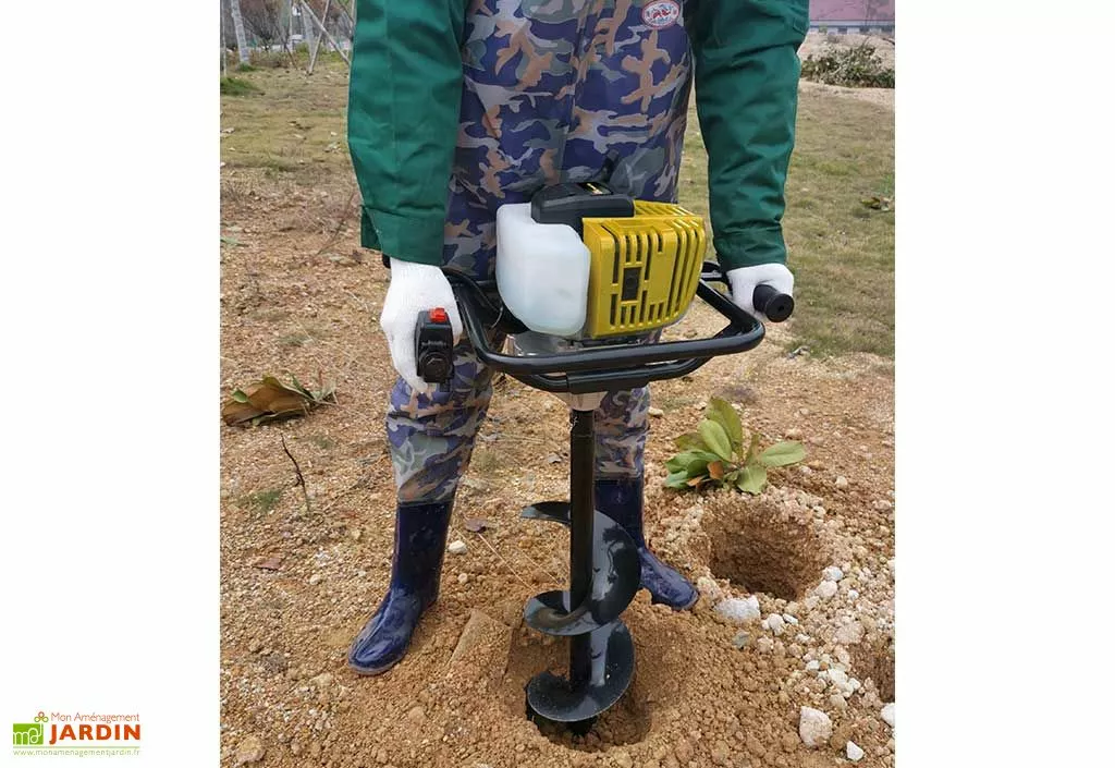 Cette tarière thermique de la marque Gardeo vous permettra de préparer votre terrain pour l’installation de poteaux, de piquets de clôture ou encore pour le plantage d’arbres, d’arbustes ou autres travaux d’entretien du jardin. Pratique et nettement moins fatigant que les modèles manuels, ce modèle de foreuse thermique vous permettra de creuser des trous dans le sol en toute simplicité et sans effort !