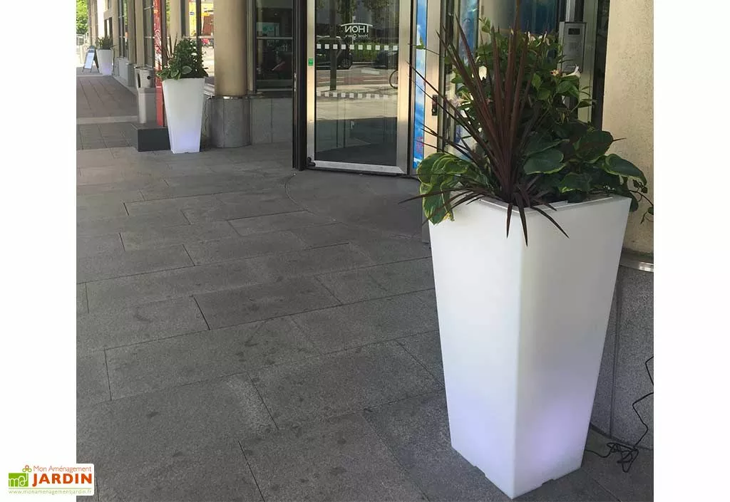 Ce pot de fleurs carré est fabriqué en polyéthylène haute densité (PEHD) rotomoulé, un matériau très résistant idéal pour l’extérieur. Ce type de plastique ne craint en effet ni les chocs, ni les intempéries ou autres températures extrêmes, le tout sans exiger d’entretien particulier. Le PEHD est également totalement recyclable.