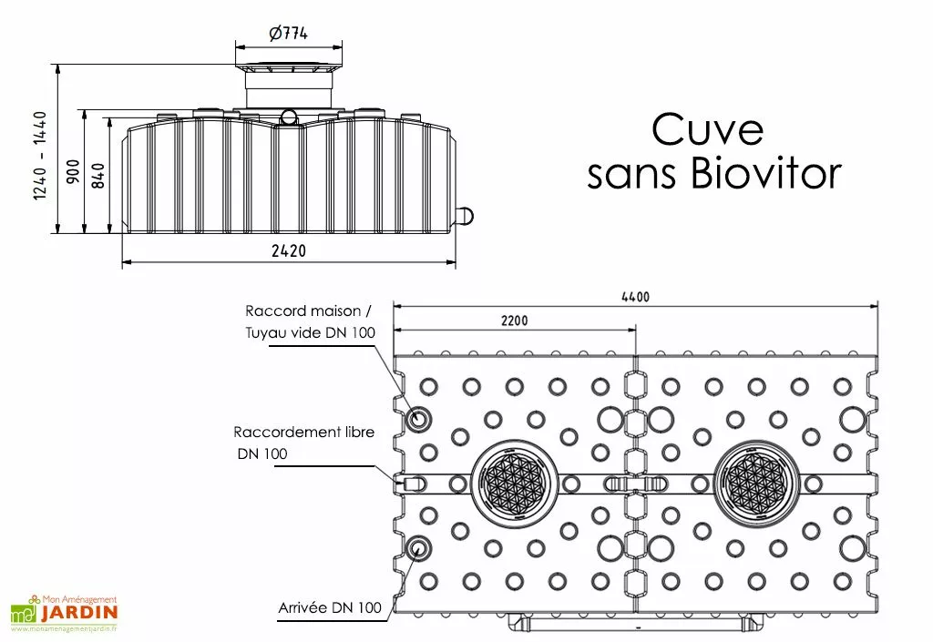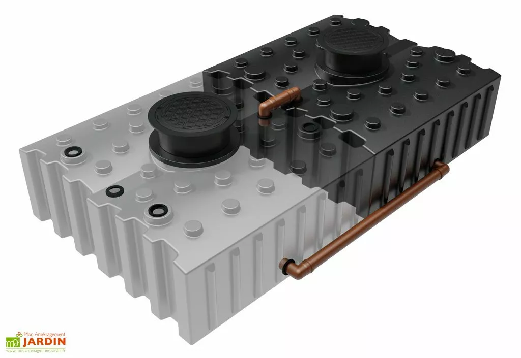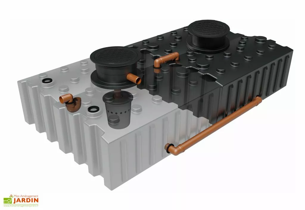 Ce récupérateur d’eau enterré est fabriqué en polyéthylène et comprend 3 raccords DN 100 pour récolter et récupérer l’eau de pluie afin d’arroser le jardin, d’alimenter des toilettes ou encore de laver la voiture. Vous pouvez choisir un système de filtration Biovitor dans les options.