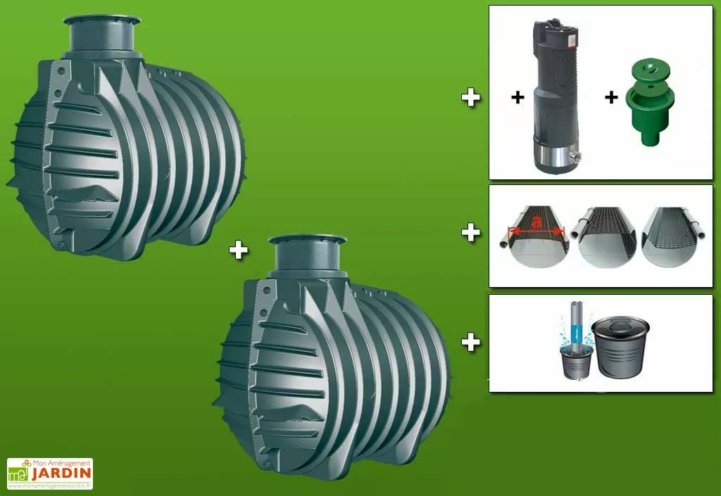 Votre kit de récupération d’eau de pluie de chez GreenLife comprend deux cuves à enterrer de 4500 litres, soit une contenance totale de 9000 litres. Ces deux cuves en polyéthylène sont livrées avec un dôme de compensation et un couvercle de sécurité chacune, un stabilisateur d’arrivée d’eau permettant de ne pas remuer l’eau au fond de la cuve, une pompe immergée, un boitier de branchement, une protection de gouttière pour éviter les feuilles mortes, un tuyau d’une taille de 5 mètres et du matériel de marquage. La pompe possède un filtre aspirant lui permettant de ne pas aspirer les impuretés, un interrupteur automatique et une protection contre la marche à sec. La pompe se met en route dès qu’un des robinets est ouvert. Elle résiste au gel. Votre kit vous servira à récupérer l’eau de pluie et à la réutiliser pour entretenir votre jardin. La garantie est de 15 ans sur les cuves et de 2 ans sur le reste du kit. La cuve est livrée face au domicile du client. Pour le déchargement, l’aide du client peut être demandée (prévoir le matériel ou des personnes sur place).