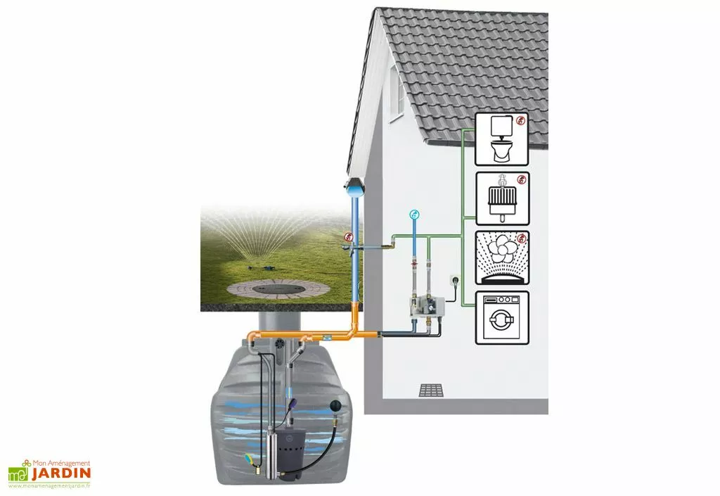 Au besoin, un interrupteur à flotteur active l’électrovalve de l’alimentation en eau potable qui reste ainsi garantie même lorsqu’il n’y a plus d’eau de pluie dans la citerne. Le système U1.1 vient donc puiser dans le réseau d’eau de la ville en attendant la prochaine pluie. Cela permet d’alimenter constamment vos installations en eau.