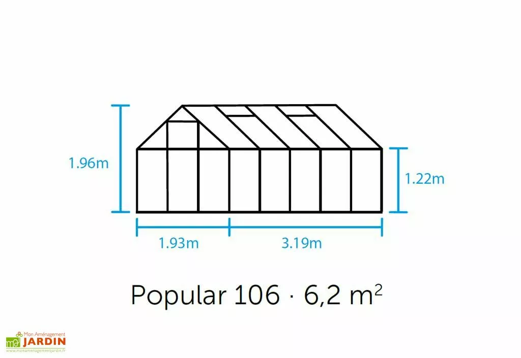 La serre de jardin Halls Popular 106 mêle l’aluminium au polycarbonate, des matériaux particulièrement résistants face aux agressions extérieures et qui ne demandent aucun entretien particulier. Elle mesure 1,93 m de large sur 3,19 m de long et occupera une surface de 6,2 m² une fois installée, un espace suffisant pour cultiver fruits et légumes même si vous ne disposez que d’un jardin de taille modeste.