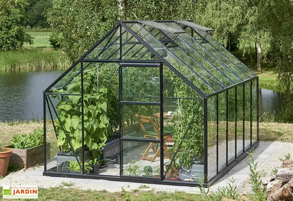 Afin d‘offrir des conditions de culture optimales, cette serre d’agrément s’est vue dotée de parois en verre horticole de 3 mm d’épaisseur. Ce type de vitrage assure une bonne transmission de la lumière naturelle tout en filtrant les rayons UV néfastes au bon développement de vos végétaux. Il garantit également une belle isolation thermique et conservera la chaleur accumulée tout au long de la journée.