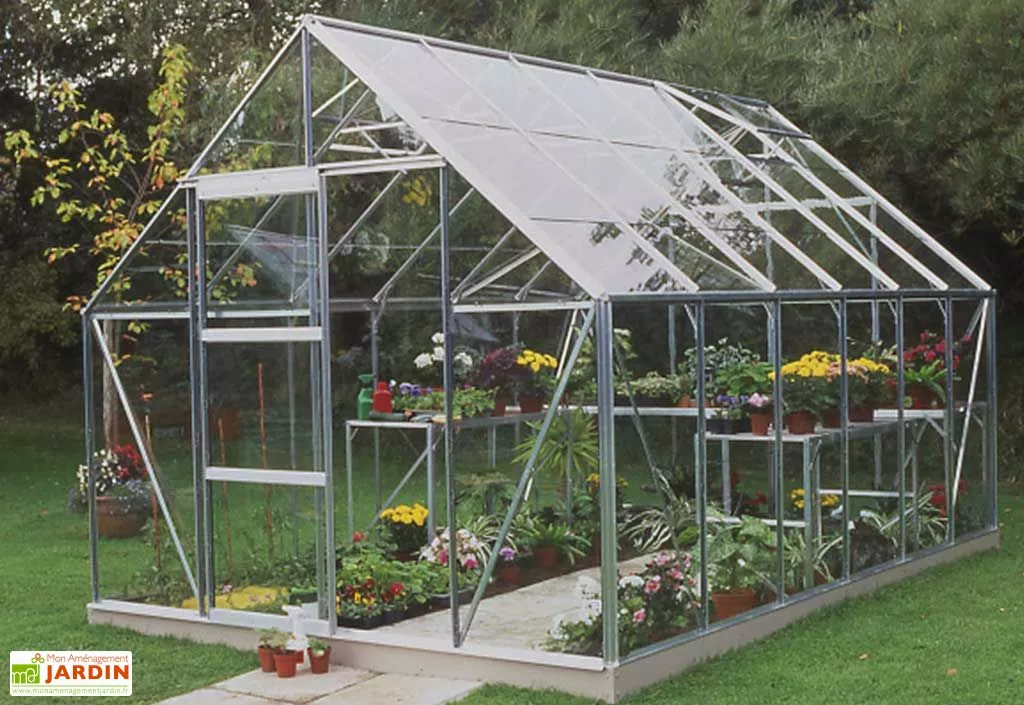 Livrée en kit, cette serre en verre devra être montée par vos soins sur un sol à niveau. Elle vous sera livrée accompagnée de tous les éléments nécessaires à sa bonne installation et d’un jeu de visserie en aluminium. Un système de gouttière est également inclus, afin de faciliter l’évacuation des eaux pluviales en cas d’averse. Aucune descente de gouttière n’est toutefois fournie.