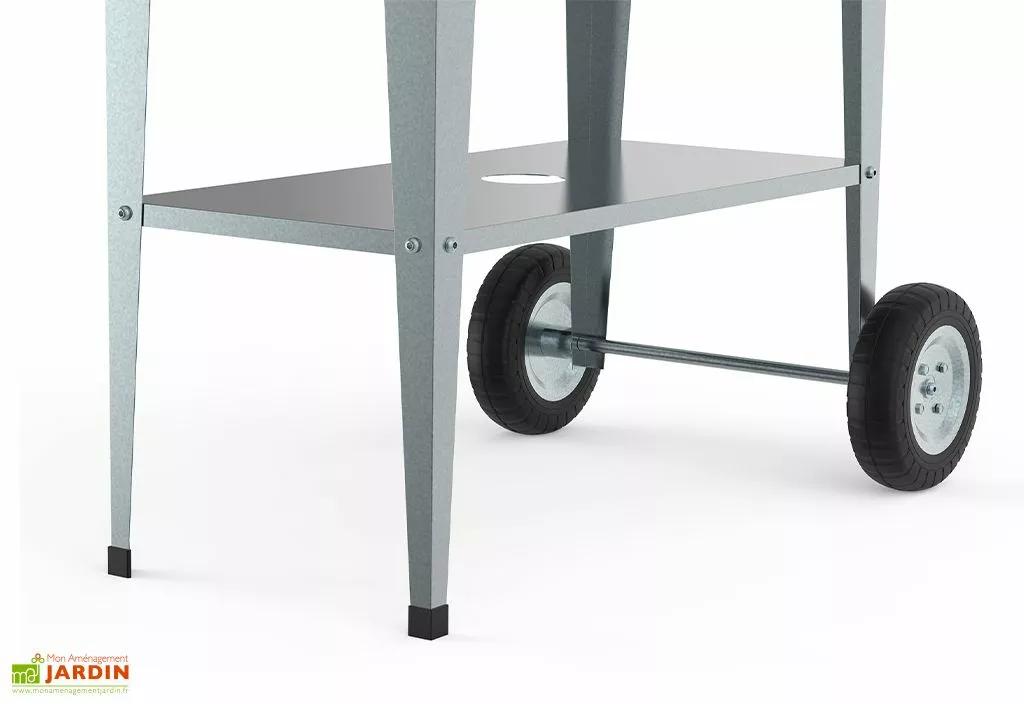 Le bac est supporté par quatre pieds, dont deux possèdent des roulettes pour un transport aisé. Vous aurez donc la possibilité de déplacer votre bac à votre guise et en fonction des zones d’ombre et de soleil. Une poignée est aussi présente pour pouvoir manœuvrer le petit potager.