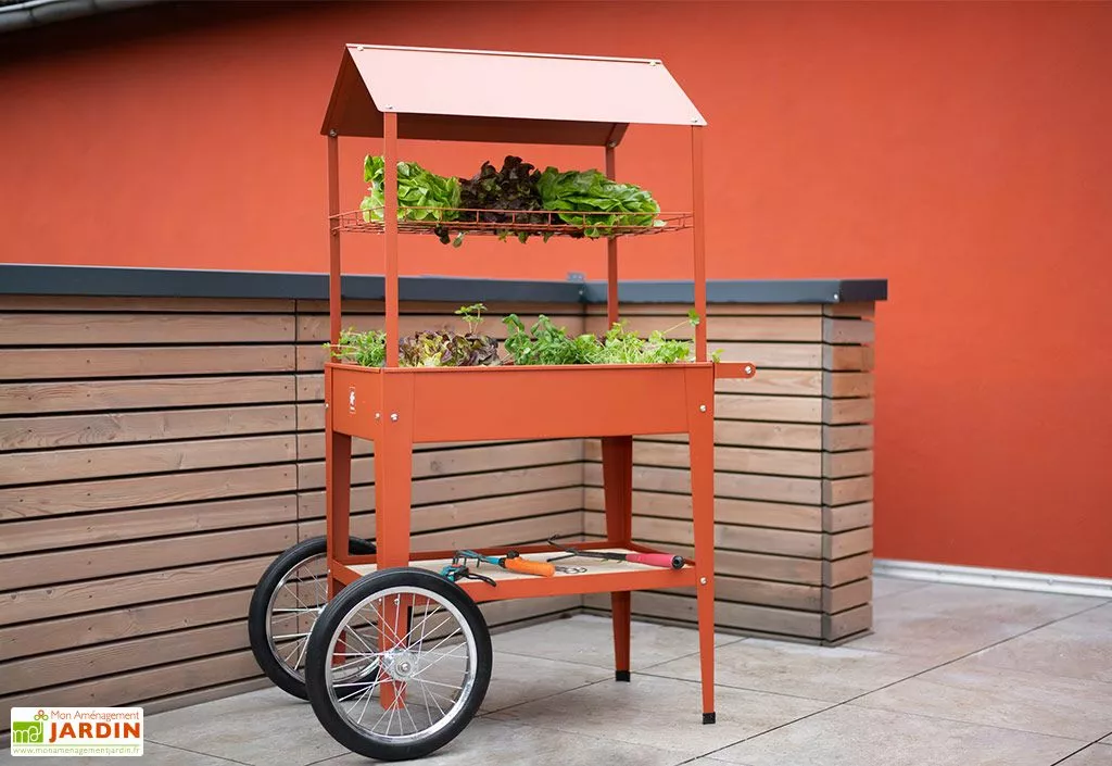 Le carré potager possède deux roues et une poignée qui vous offrent la possibilité de le déplacer en fonction de l’orientation du soleil.