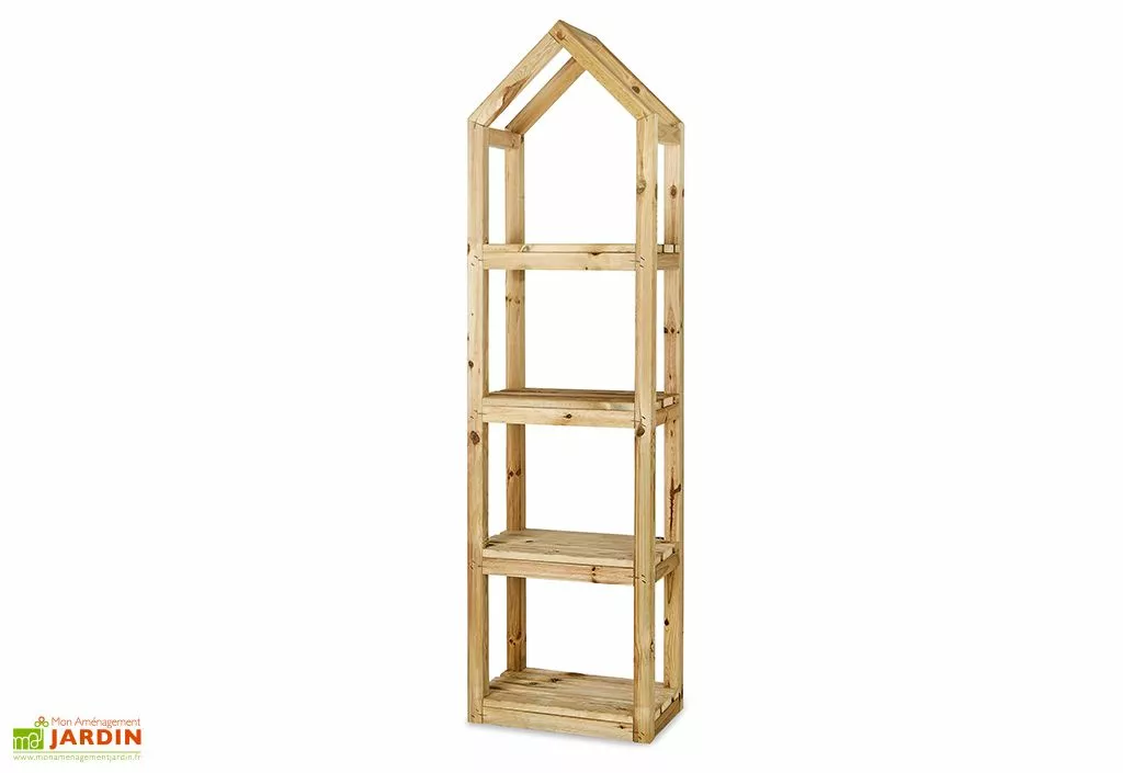 Cette étagère en bois Hortalia est pensée pour une utilisation en extérieur. Elle est en effet fabriquée en pin traité par autoclave classe 4, une protection qui lui confère une grande résistance face à l’humidité, à la moisissure ou autres insectes souvent responsables de la détérioration du bois. Aucun traitement supplémentaire n’est alors à prévoir et l’étagère ne vous demandera aucun entretien particulier.