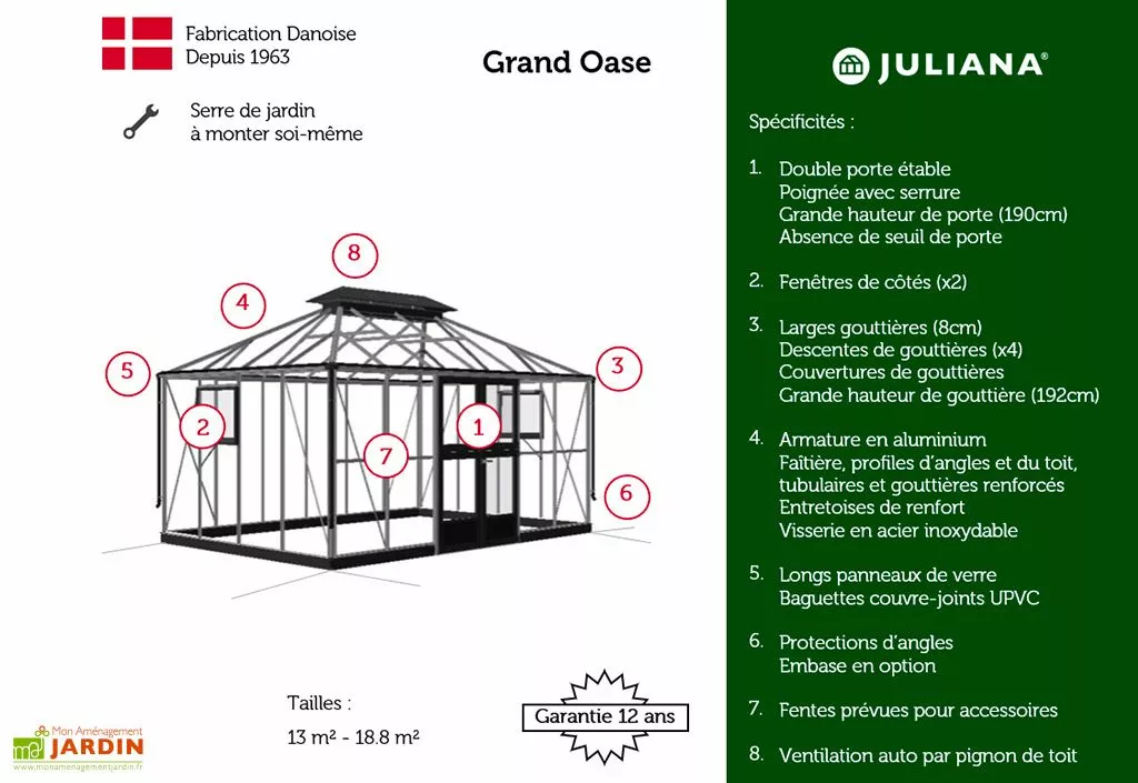 Le jardin d’hiver est livré en kit avec une notice de montage détaillée pas à pas, permettant de faciliter l’assemblage. Des vidéos son également disponibles pour vous aider lors du montage.