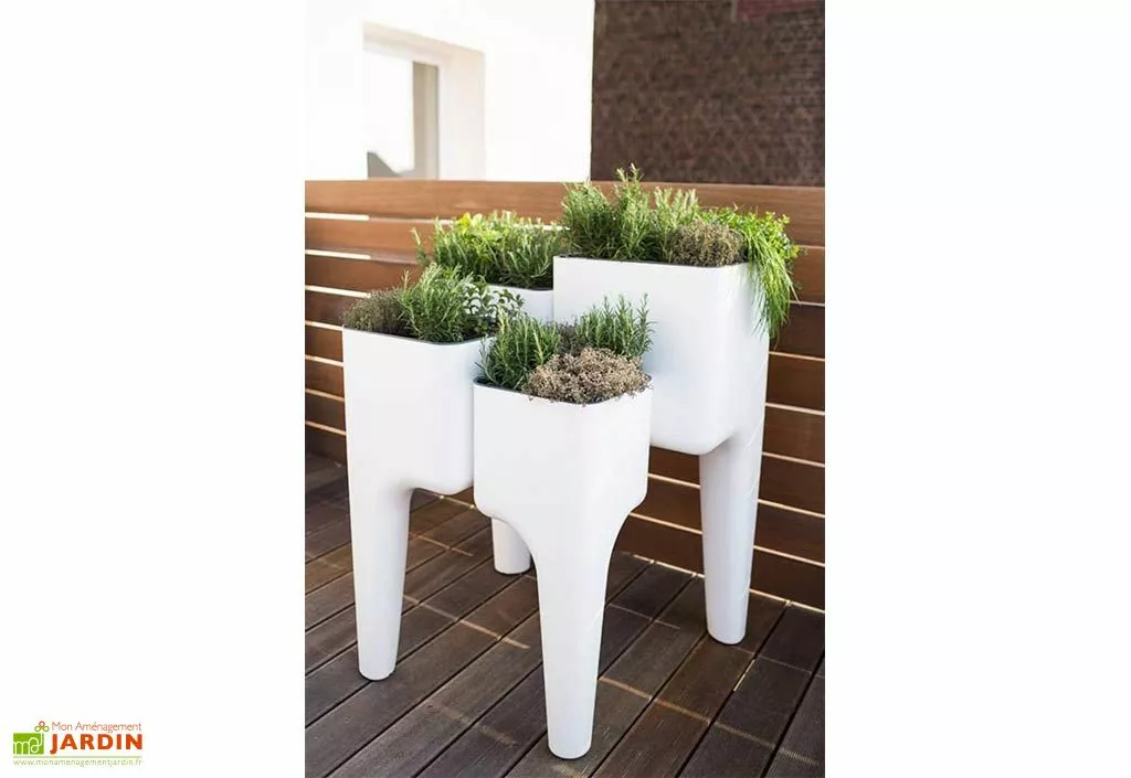 La jardinière Kiga XL blanche de chez Kiga est l’accessoire indispensable pour la cuisine, le balcon ou la terrasse. Composée de 4 bacs et 4 pieds, la table potagère peut être posée en carré ou alignée le long d’un mur selon la place disponible. L’assemblage des bacs entre eux se fait très simplement à l’aide de 4 boulons (fournis). Les 4 bacs ont tous une hauteur différente : 104 cm, 96 cm, 88 cm et 80 cm.