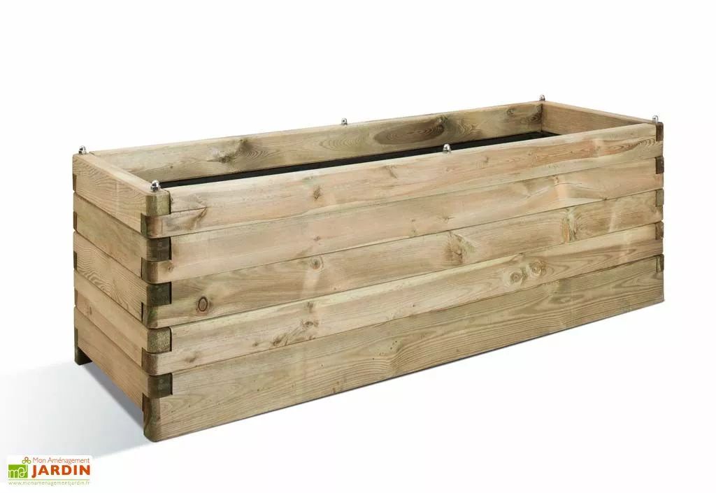 Cette jardinière mesure, à l’intérieur, 141 x 41 cm (longueur, largeur). Ses dimensions hors tout sont de 150 x 50 x 50 cm (l,l,h). Elle vous offre une contenance généreuse de 208 litres. L’assemblage du pot de fleurs est réalisé grâce à 6 tiges filetées.