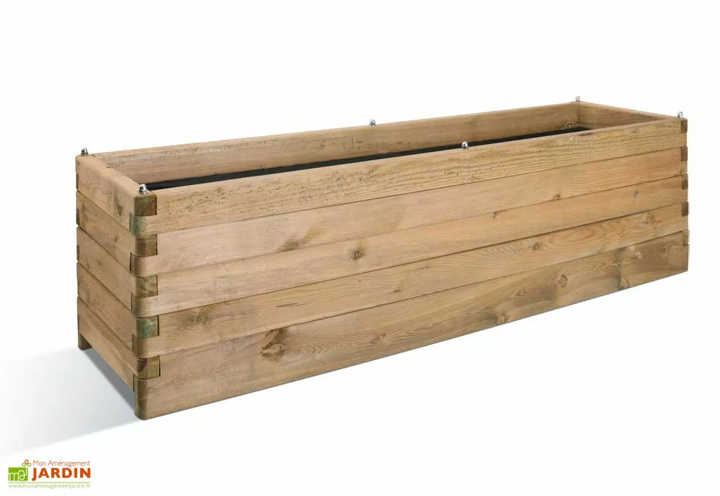 Votre bac à fleurs en bois de chez Jardipolys comporte des dimensions intérieures de 41 x 171 cm (longueur, profondeur). Elle possède des dimensions totales de 180 x 50 cm (longueur, largeur) sur 50 cm de hauteur. Sa contenance est de 252 litres et des tiges filetées permettent d’assembler le bac. Le bois possède une épaisseur de 4,5 cm.