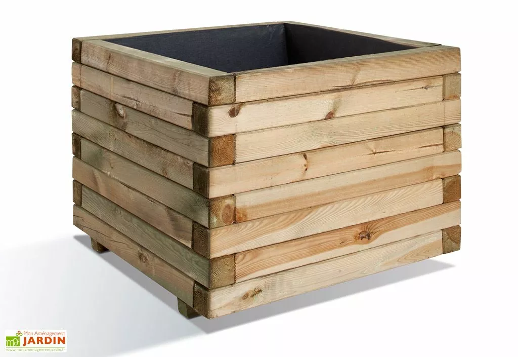 Ce bac à fleurs affiche des dimensions intérieures de 66 x 66 cm (longueur, largeur). Il dispose d’un système d’assemblage par clous totalement invisible ainsi que d’un géotextile de protection. Il possède une grande contenance de 230 litres.