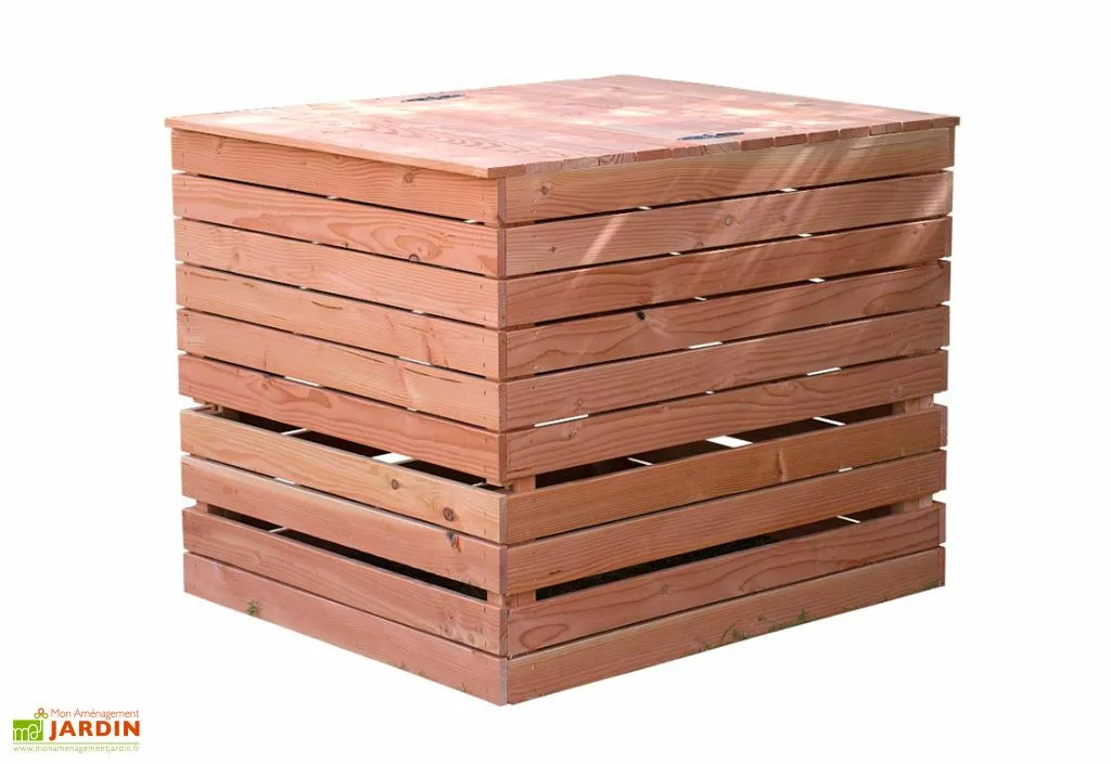 Conçu en bois, matériau intéressant car plus isolant, ce composteur mobilise des parois de 20 mm d’épaisseur constituées de lattes de Douglas raboté. Il s’agit d’un bois particulièrement résistant qui ne craindra ni les intempéries, ni les insectes ou la moisissure, le tout sans exiger d’entretien ou de traitement particulier. Les charnières et attaches sont quant à elles conçues en inox.
