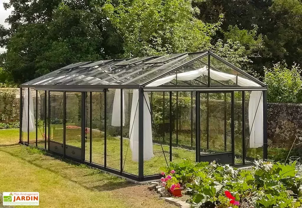 Cette serre existe dans différentes finitions : aluminium naturel, aluminium laqué anthracite (RAL 7016) ou vert (RAL 6009). D’autres coloris sont également disponibles sur demande (sélectionner « Autre coloris » au moment de passer commande et nous contacter pour nous indiquer le RAL choisi).