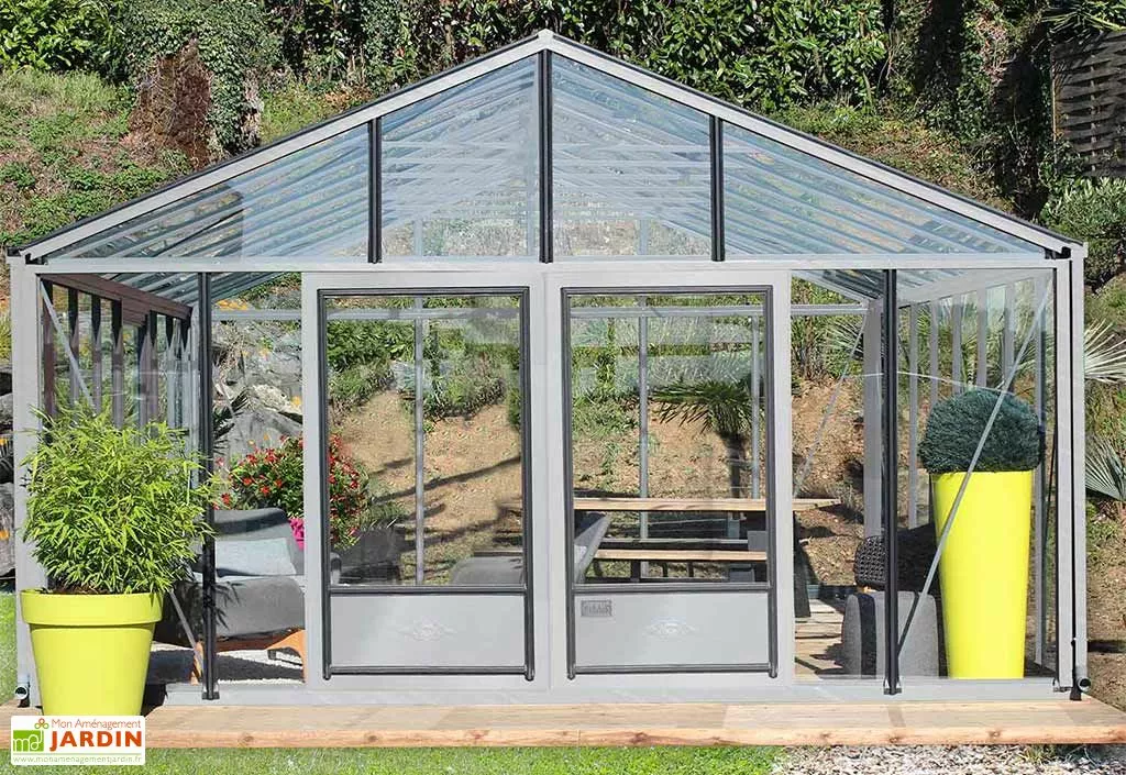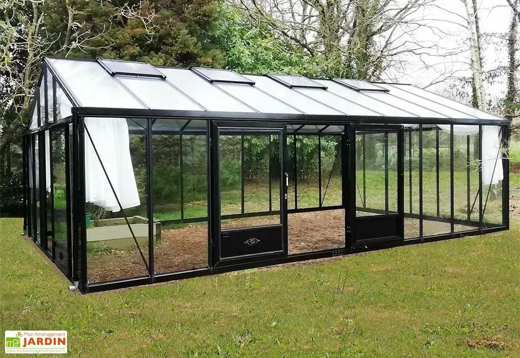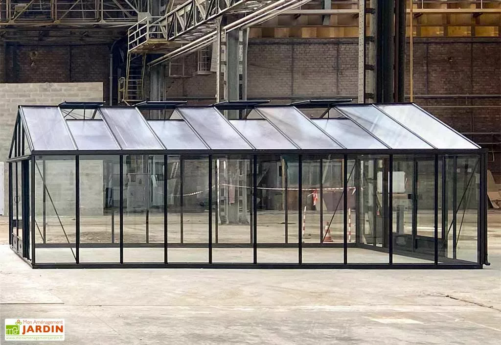 Cette serre existe dans différentes finitions : aluminium naturel, aluminium laqué anthracite (RAL 7016) ou vert (RAL 6009). D’autres coloris sont également disponibles sur demande (sélectionner « Autre coloris » au moment de passer commande et nous contacter pour nous indiquer le RAL choisi).
