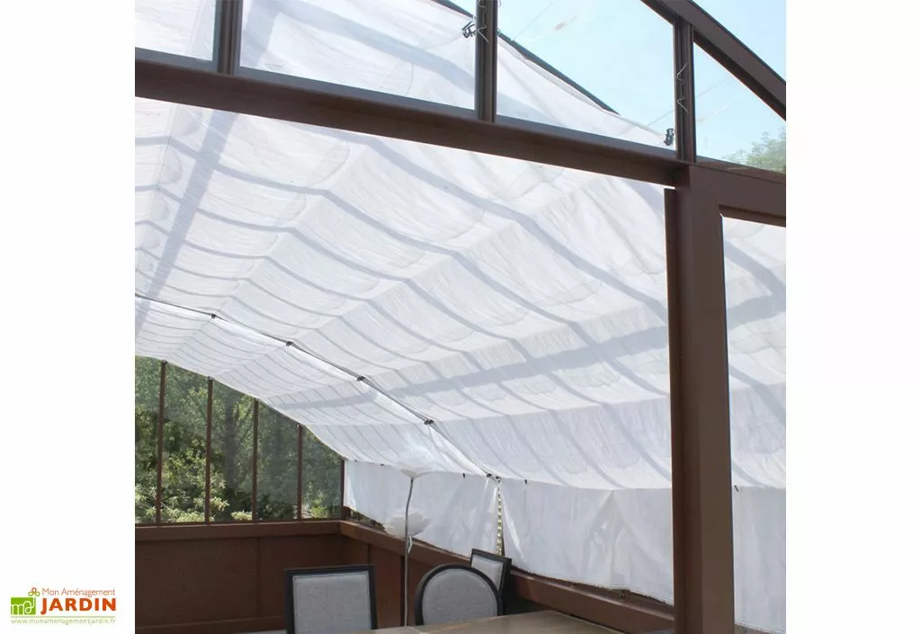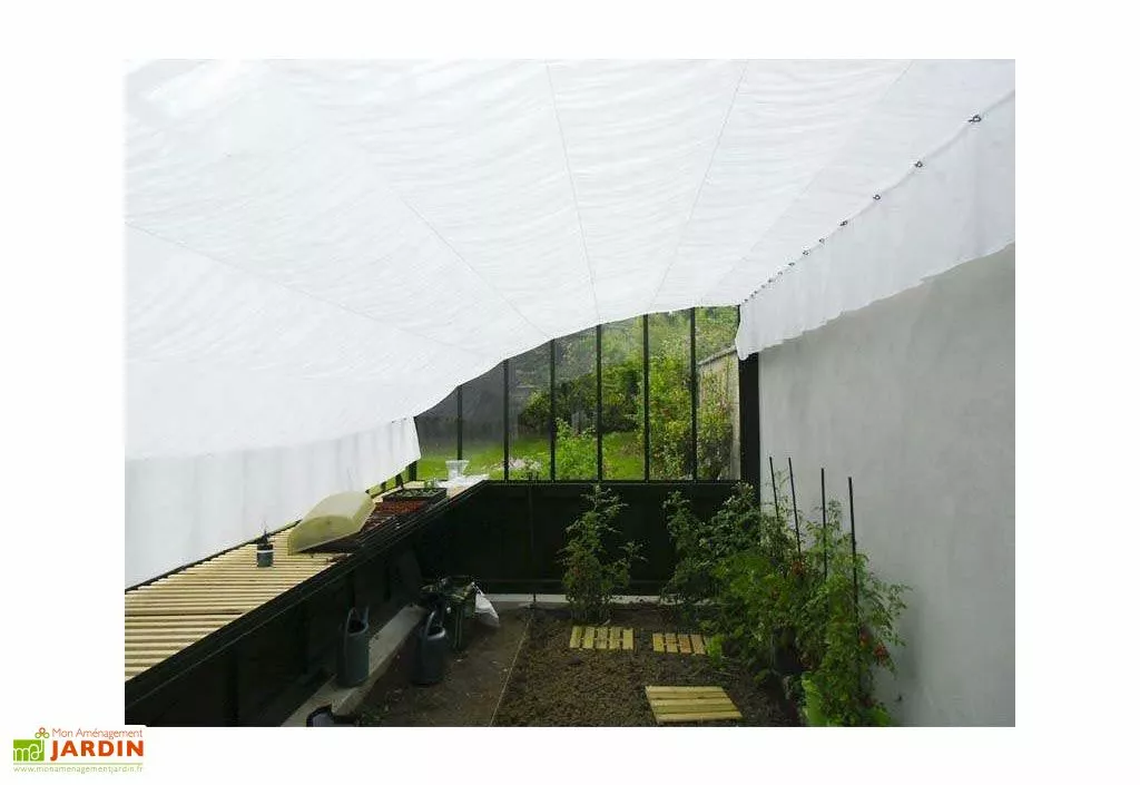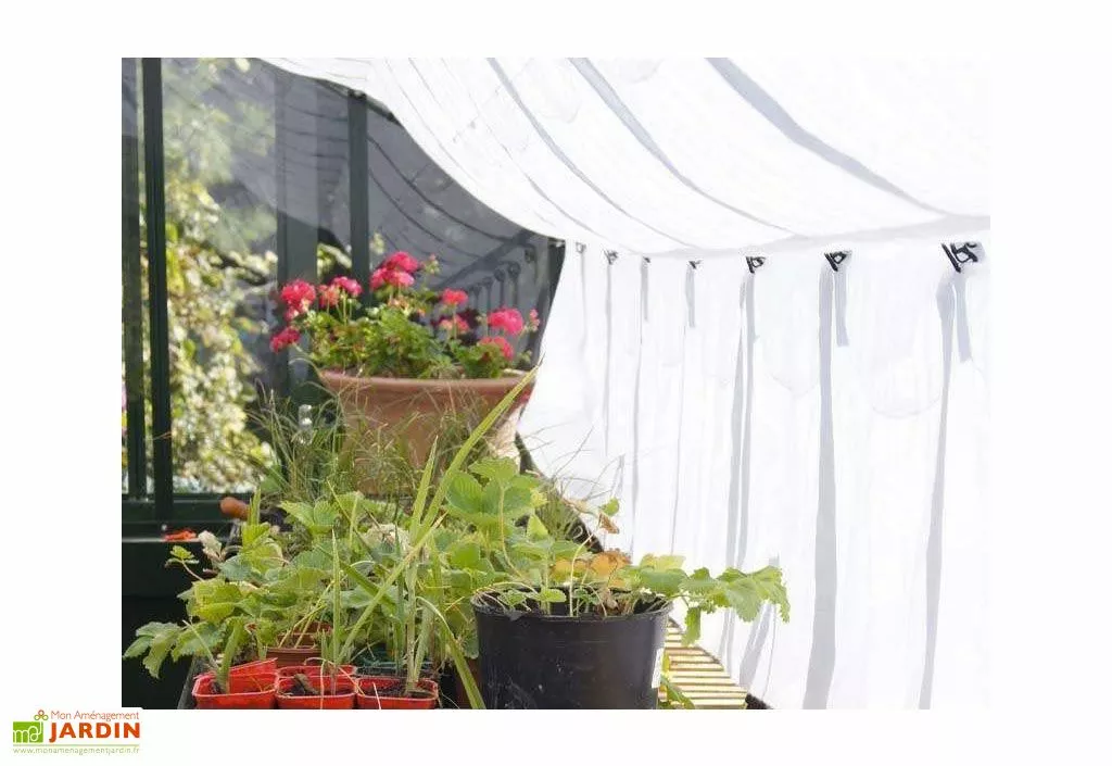 Le système d’ombrage pour serre Chambord/Versailles comprend une grande toile blanche disponible en 4 longueurs, à choisir selon la dimension de la serre :