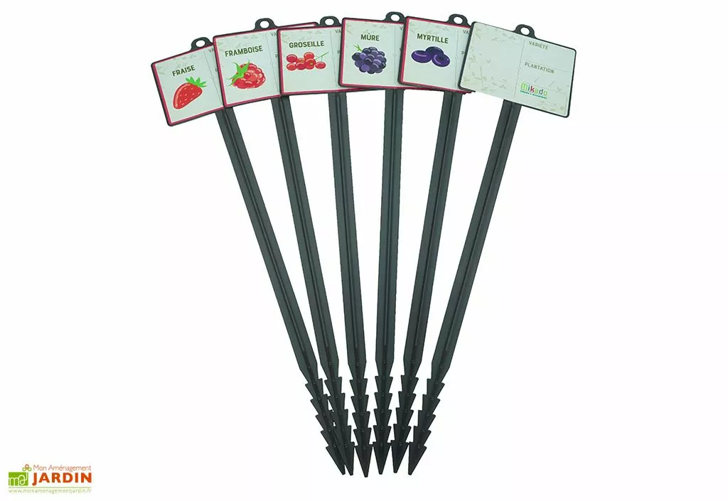 Ces jalons pour plantation de la marque Mikado vous permettront de différencier en toute simplicité les diverses variétés de fruits de votre potager, tout en vous renseignant sur la date à laquelle elles ont été plantées. Chacun d’entre eux dispose d’une étiquette illustrée, à l’exception d’une étiquette vierge.