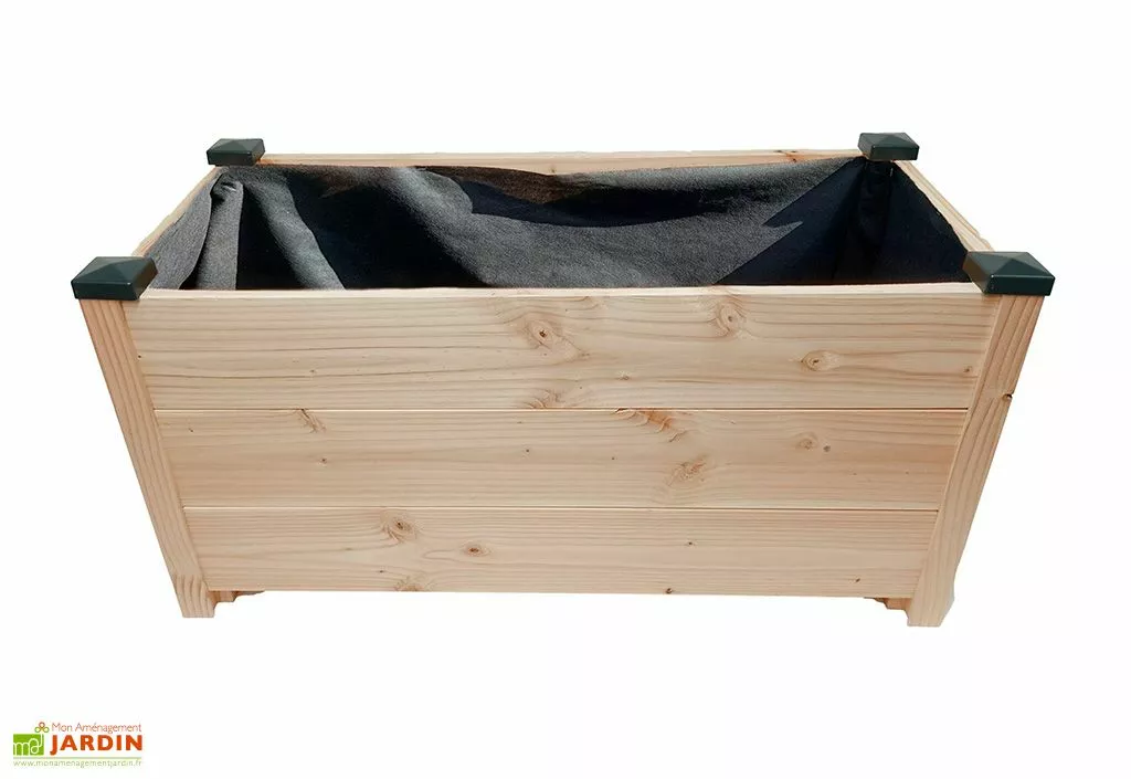 Fabriquée en France, la jardinière en bois ne prendra que très peu de place, elle affiche des dimensions de 40 cm de longueur sur 80 cm de profondeur pour 41 cm de hauteur et elle offre une contenance de 96 litres. Son design épuré dans un coloris naturel lui permet de s’intégrer aisément dans tous les espaces extérieurs. Le bac à fleurs extérieur en bois est équipé de 4 petits capuchons en plastique au niveau des angles.