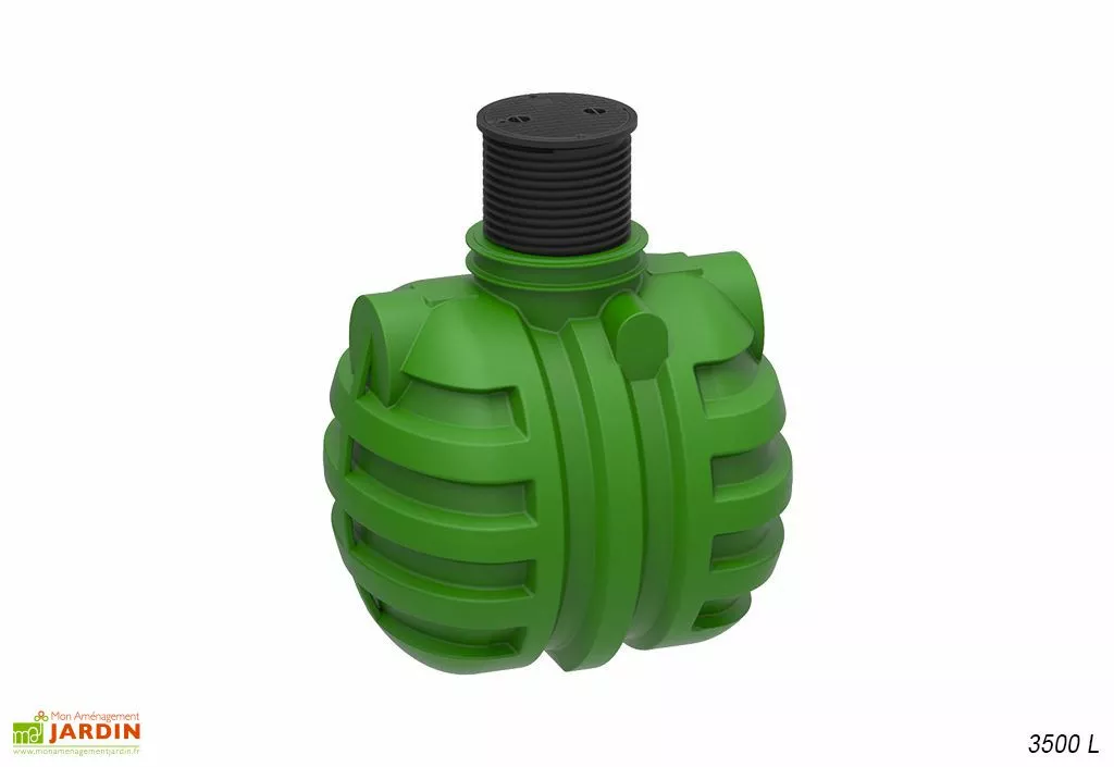 Facile à installer, notamment grâce à son fond plat, ce récupérateur d’eau de pluie devra être enterré non loin de votre maison. Il est fabriqué en polyéthylène moulé, un matériau très résistant et entièrement recyclable. Notez donc qu’une fois enterrée, cette cuve ne craindra pas l’humidité et ne se déformera pas, même après plusieurs années. Sept tailles sont disponibles, selon vos besoins : 2200, 2600, 3000, 3300, 3500, 5000 ou 6000 litres.