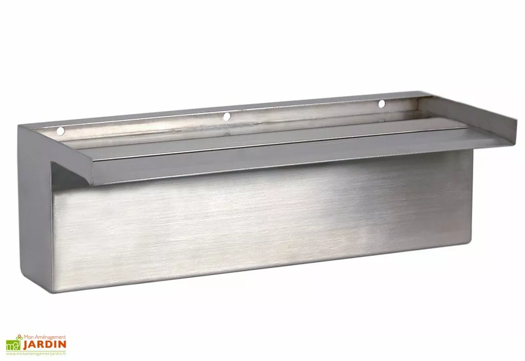 Cette fontaine prend la forme d’un bac en inox de 150 cm de long. L’inox étant un matériau insensible à la corrosion, ce bac ne craindra pas la rouille et résistera très bien aux intempéries si installé en extérieur. Pour fonctionner, cette fontaine devra évidemment être reliée à une pompe (non incluse). Deux possibilités de connexions, derrière et sous le bac, permettent d’ailleurs de faciliter son intégration.