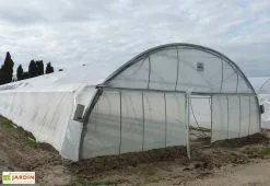Côté couverture, cette grande serre tunnel s’est vue dotée d’une bâche en polyéthylène de qualité maraîchère de 200 microns d’épaisseur (200 g/m²). Traitée anti-UV, cette dernière se montrera également très résistance face aux intempéries (pluie, vent, neige…) et est d’ailleurs garantie 5 ans, soit quatre saisons. Sous cette bâche, à l’intérieur de la serre, vous retrouverez des supports de culture prenant la forme de barres transversales situées à 2,10 m de haut, très pratiques pour les plantations de tomates ou pour l’arrosage par aspersion, notamment.