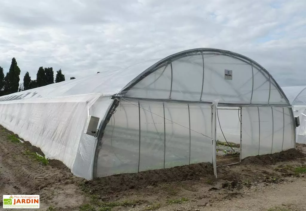 - Serre sans pignon, avec gaine et écarteurs de bâche.