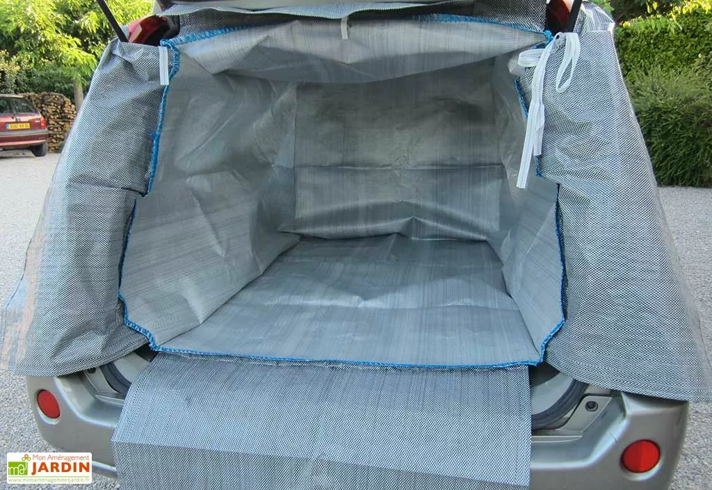 Extrêmement résistante et parfaitement étanche, cette bâche pour coffre de voiture est fabriquée en polypropylène tissé et laminé 230 g/m². Elle mesure 150 cm de large sur 100 cm de long pour 100 cm de haut lorsqu’elle est dépliée, des dimensions qui passeront à 50 x 55 cm une fois la housse repliée. Notez enfin que cette bâche pour voiture est conçue à partir de matériaux recyclables et que le tout est fabriqué en France.