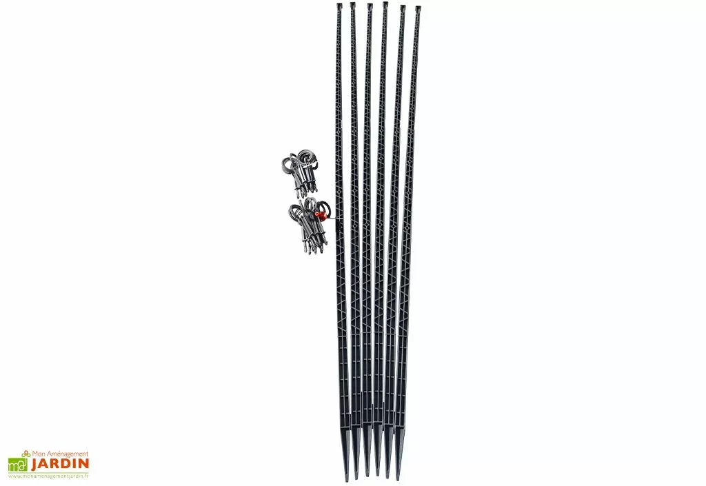 Le tuteur Mikado est livré par lot de 6. Il est en polypropylène recyclé, teint en gris anthracite et mesure 150 cm de hauteur pour 26 x 26 mm de côté. Il est constitué d’une tête plate et carrée et d’un embout pointu pour l’ancrer facilement dans la terre. 8 trous de 7 mm de diamètre vous permettent d’installer les attaches fournies.