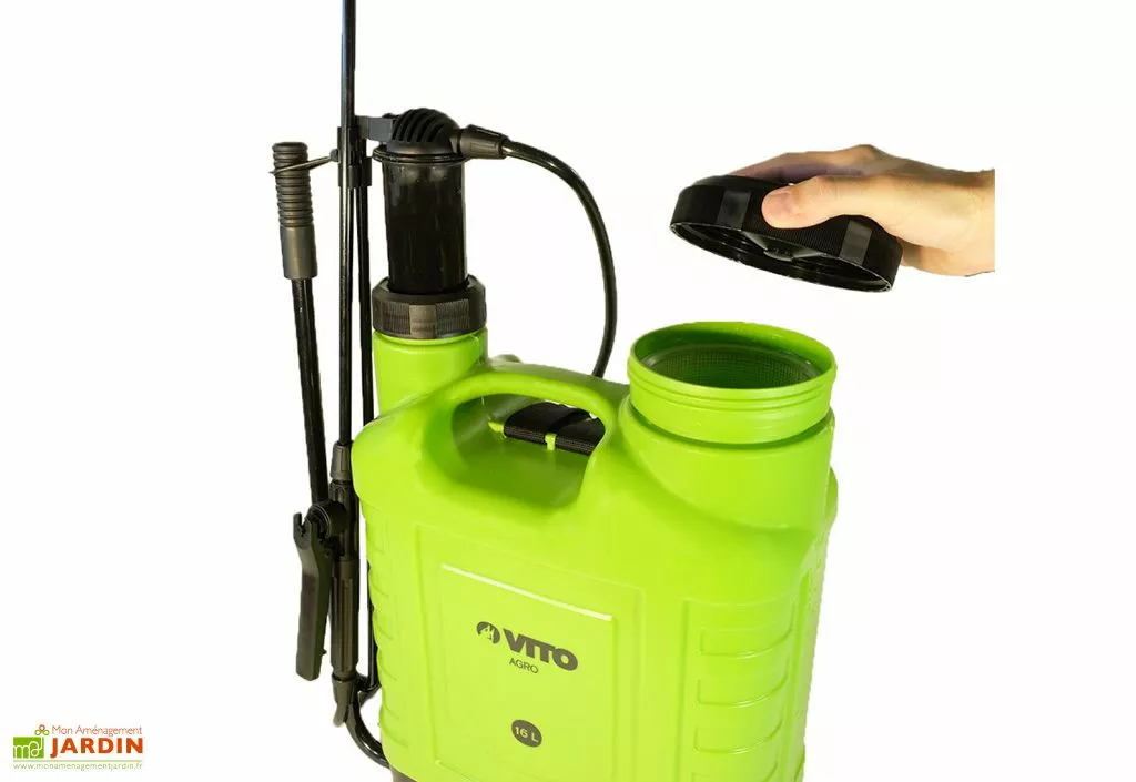 Ce pulvérisateur de jardin Vito est parfait pour l’entretien de votre extérieur, pour le désherbage comme pour le démoussage d’une toiture, par exemple. Il s’agit d’un modèle manuel équipé d’un réservoir de 16 L et d’un tuyau de 1,2 m de long au bout duquel se trouve une lance de 1 m. Sa pompe manuelle permet d’obtenir une pression maximum de 2,95 bar.
